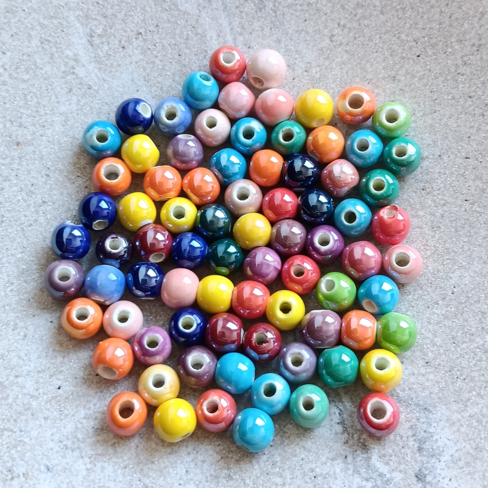 - Des perles (acrylique, verre, céramique, naturelles, etc.)
