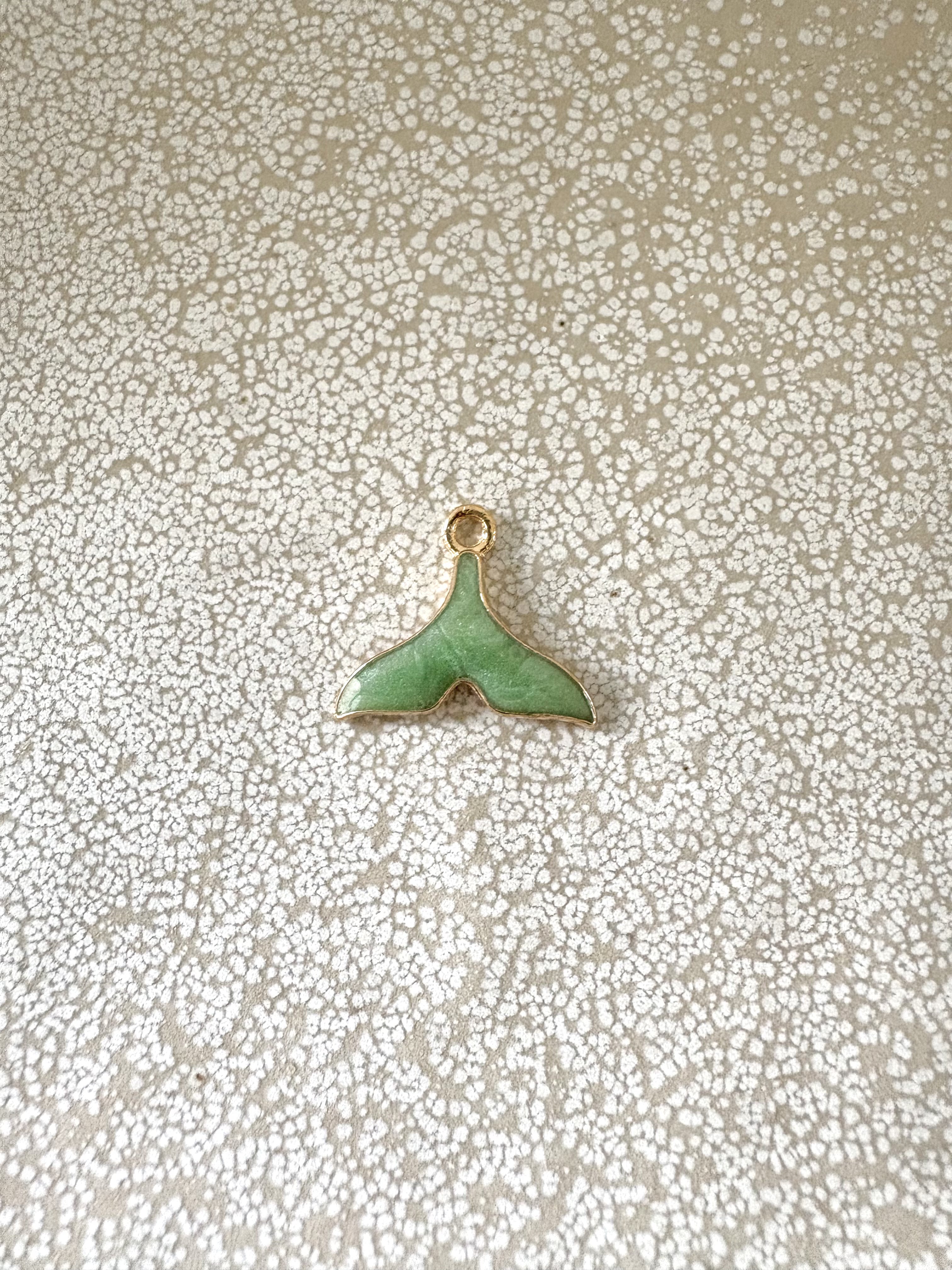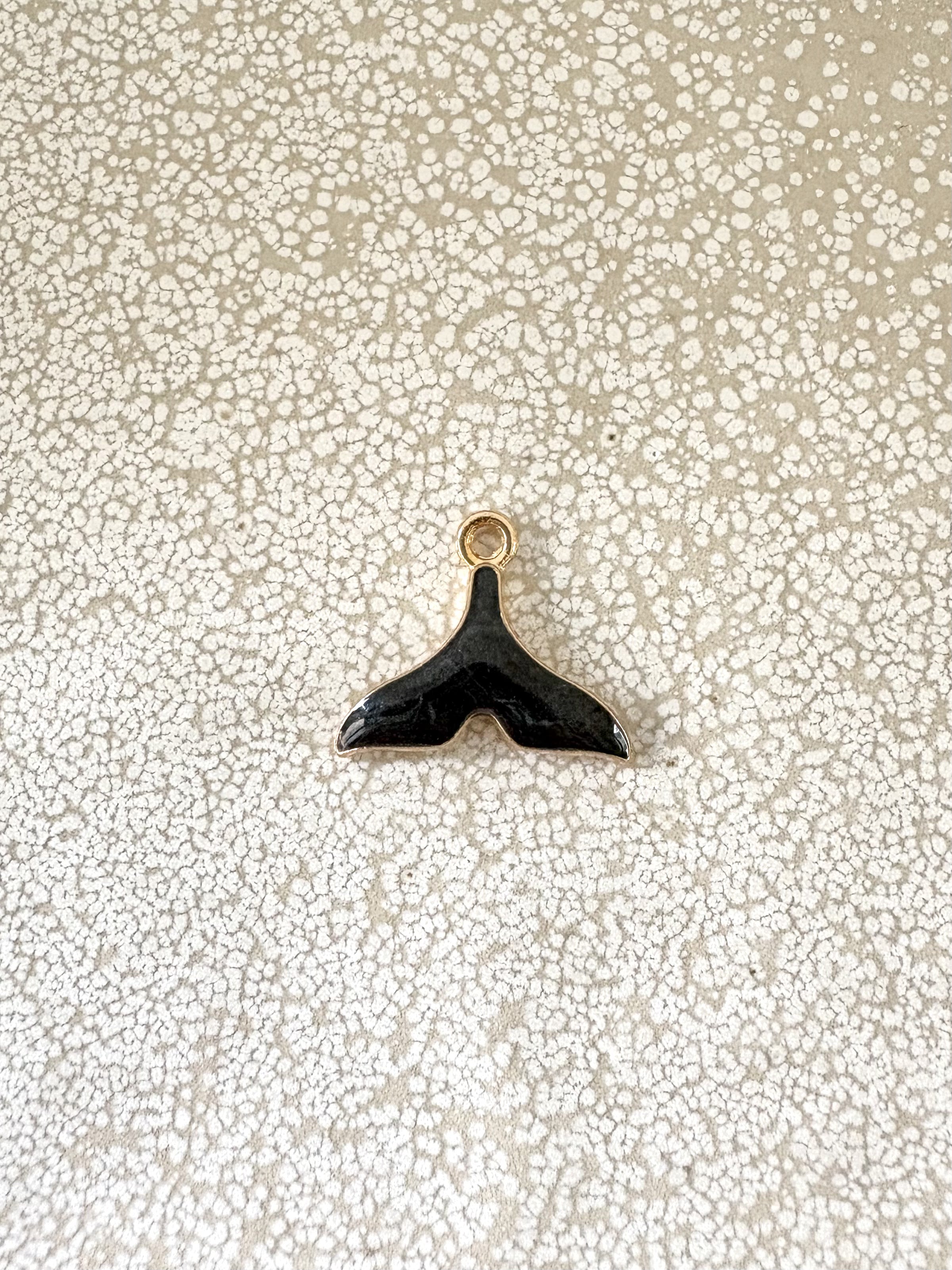 Breloque queue de baleine émaillée base métal doré - 15x17 mm