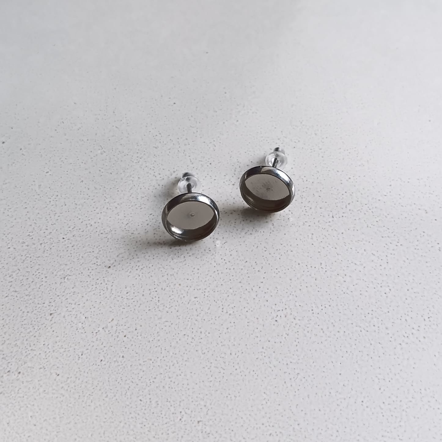 Clous d'oreilles pour cabochon en acier inoxydable argenté - 8 mm