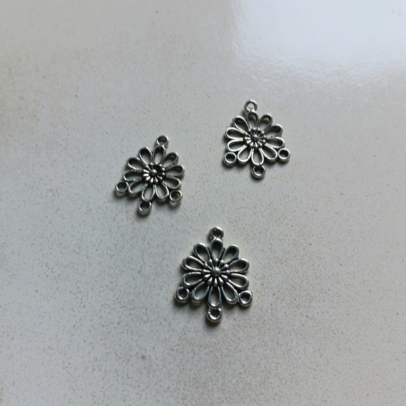 Connecteur/chandelier fleur argenté - 23x19 mm 3 trous