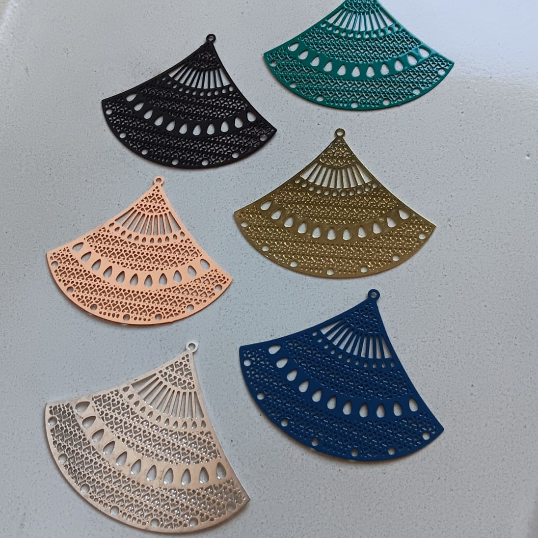 Ajoutez une touche graphique et raffinée à vos créations DIY avec cette grande estampe en forme d’éventail. Son motif filigrané délicat, ajouré avec finesse, évoque les lignes élégantes d’un éventail stylisé. Grâce à sa forme ample (40x50 mm), elle attire instantanément le regard et permet de concevoir des bijoux au style affirmé, tout en légèreté.