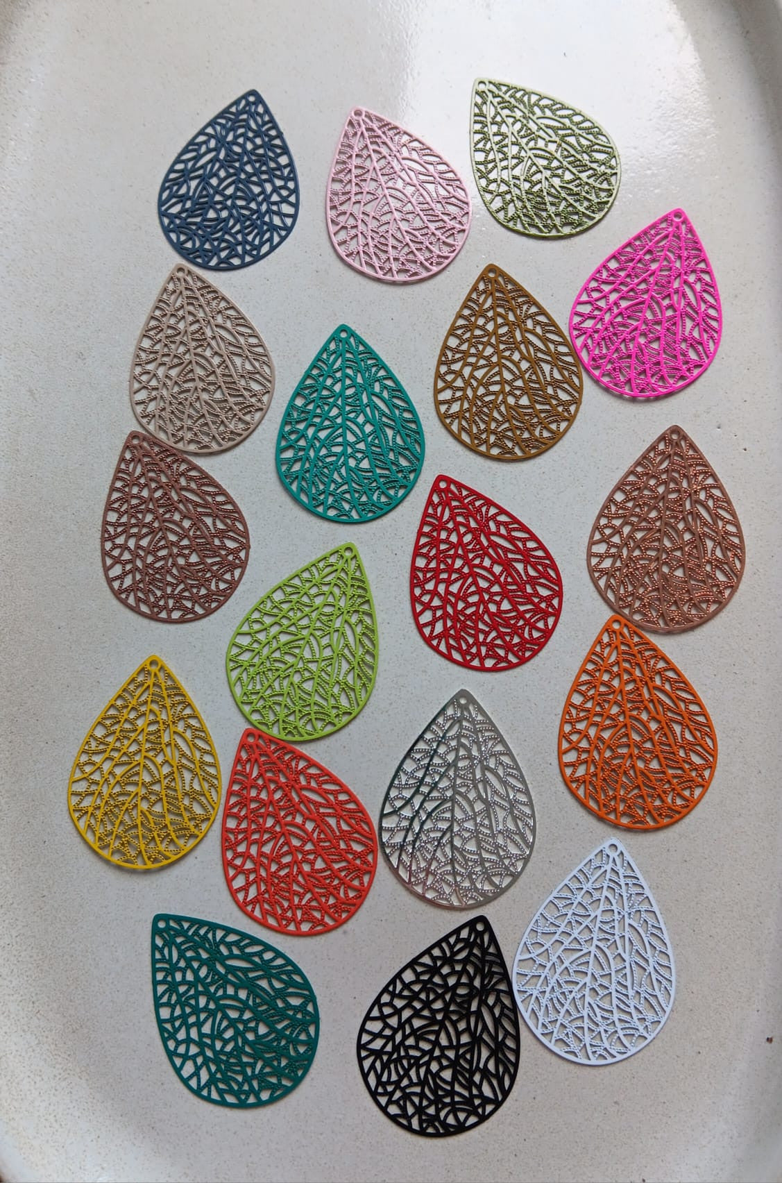 Apportez une touche de finesse et de légèreté à vos créations avec cette grande estampe filigrane en forme de goutte. Son motif ajouré délicatement travaillé et sa forme généreuse de 41x30 mm en font une pièce idéale pour sublimer vos bijoux fantaisie. Grâce à sa surface légère et élégante, elle se prête parfaitement à la création de boucles d’oreilles pendantes, de pendentifs raffinés ou d’éléments décoratifs pour collier ou sautoir. Une base parfaite pour vos projets DIY au style bohème, romantique ou ethnique.
