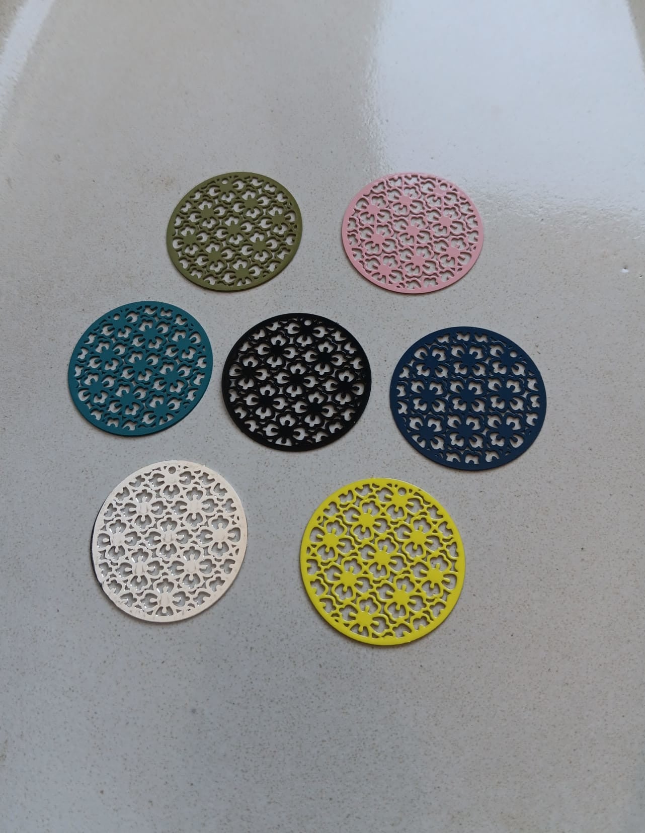 Apportez une touche de poésie et d'élégance à vos bijoux DIY grâce à cette estampe filigrane ronde au motif floral délicatement ajouré. Son design fin et équilibré évoque la légèreté des fleurs stylisées, tout en offrant une belle présence visuelle. Assez grande pour être utilisée comme pièce centrale, elle sublimera vos boucles d’oreilles longues, colliers pendants ou sautoirs romantiques. Facile à intégrer dans différents styles de créations, elle s’associe parfaitement à des perles, des pampilles ou des chaînes fines. Un composant idéal pour vos bijoux féminins, bohèmes ou poétiques.