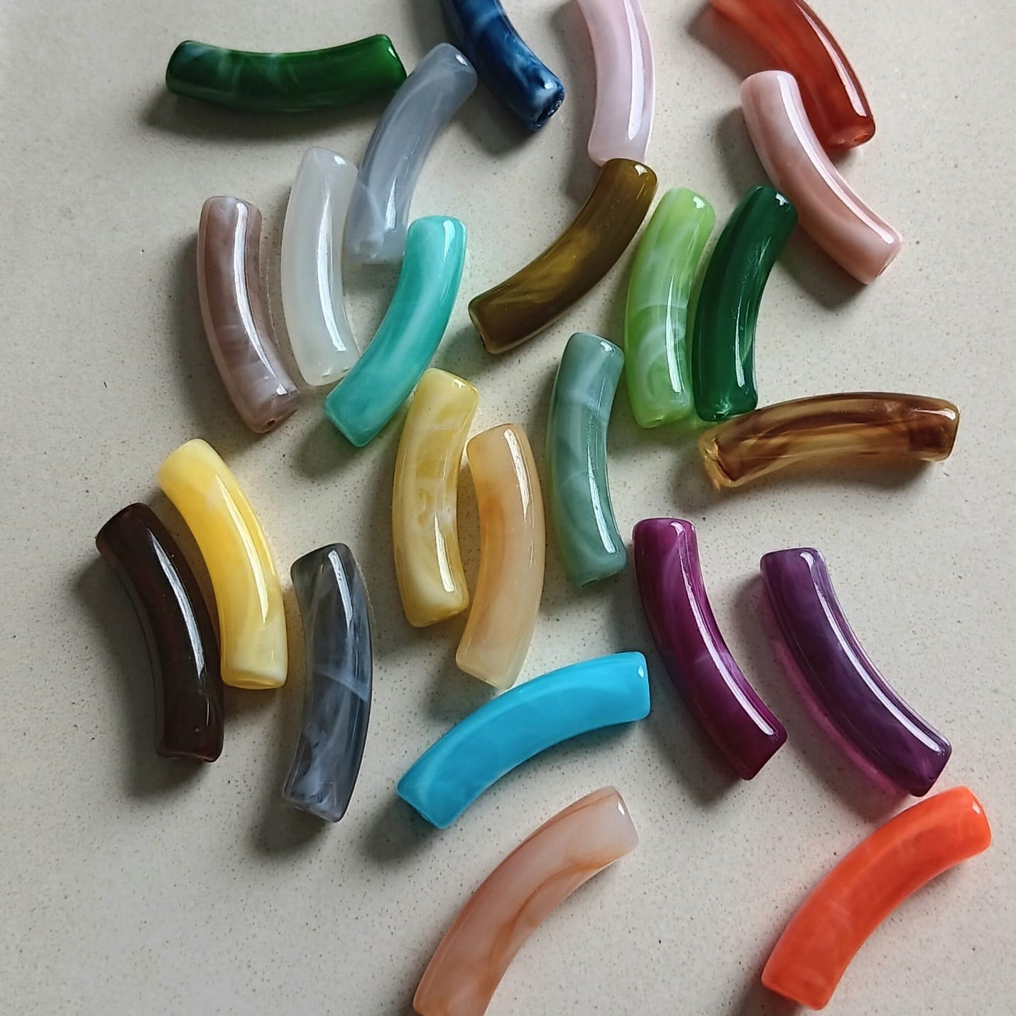 Ces perles tubes incurvés en acrylique marbré de 31x9 mm sont parfaites pour donner une touche moderne et colorée à toutes voss créations de bijoux. Leur forme courbée et leur finition brillante offrent un rendu visuel original, à la fois léger et élégant. Disponibles dans une large gamme de couleurs, ces perles permettent des combinaisons infinies : du pastel doux aux tons profonds, en passant par des teintes pleines de peps. Leur légèreté en fait un choix idéal pour la réalisation de boucles d’oreilles, colliers graphiques ou bracelets originaux.