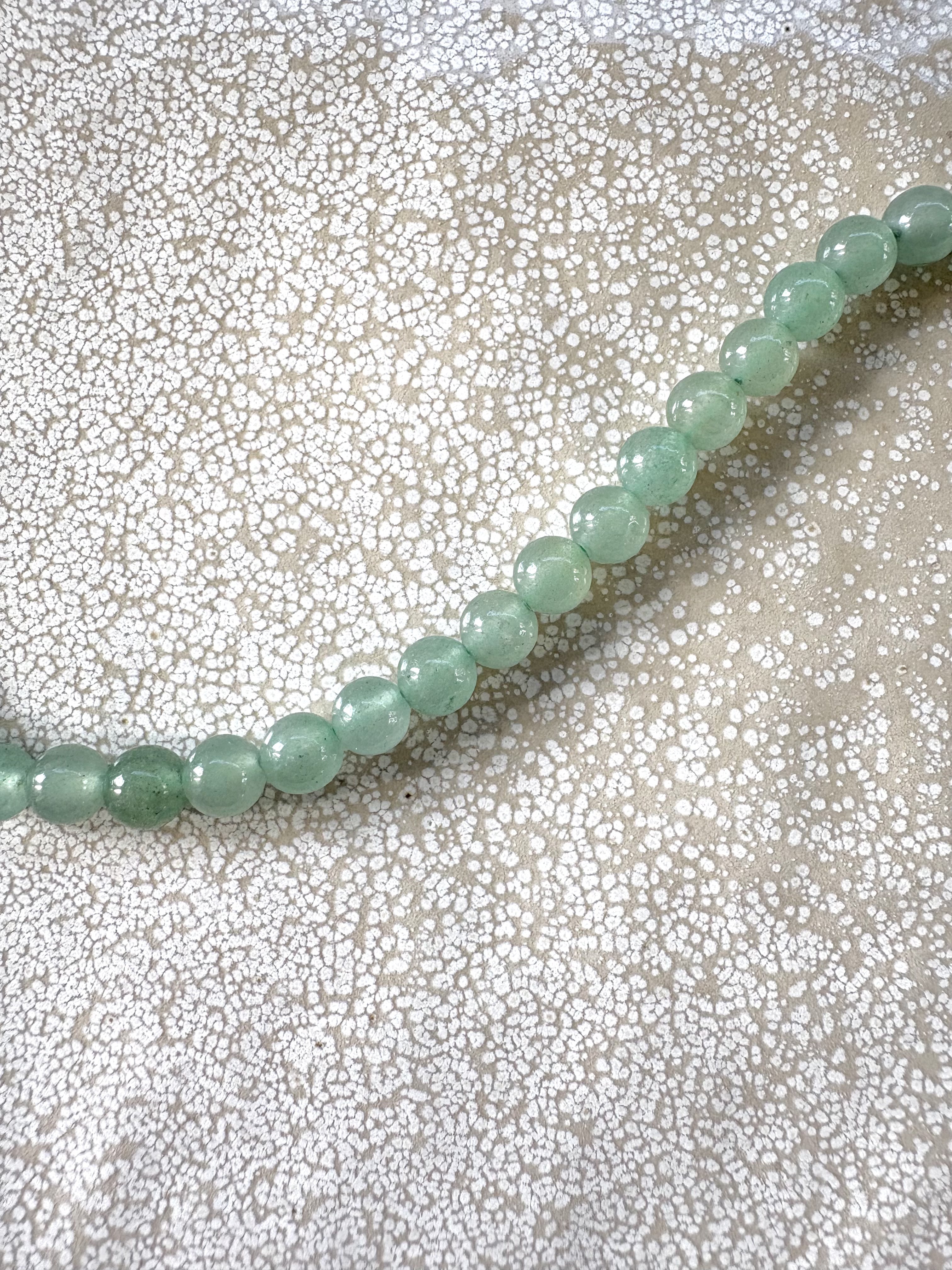 Très utilisée dans la bijouterie fantaisie et la création de bracelets en pierres naturelles, l’aventurine verte se distingue par ses nuances naturelles allant du vert clair au vert plus profond. Ces variations donnent à chaque perle un caractère unique et rendent chaque bijou authentique.