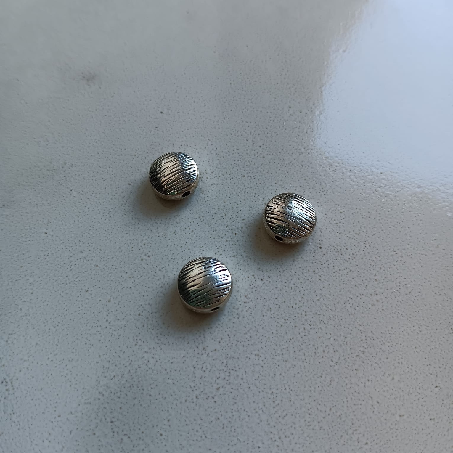 Perles rondes plates rayées en métal argenté - 10 mm x5